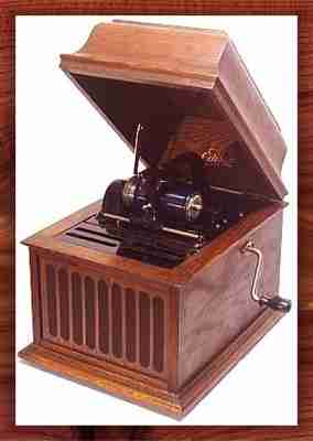 "Amberola" 30, 1915-29. The little Amberola 30 is typical of Edison's table model Amberolas. The model 30 features a Diamond C reproducer and a simple-spring motor. The model 30 originally sold for $30.00, very much in keeping with the price of similar sized Victrolas and Grafonolas. The "-ola" suffix was always used to denote internal horn machines. |
