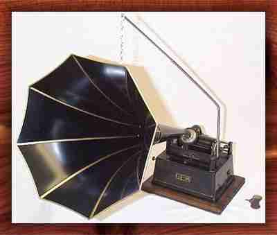 | A common accessory was the minature "Morning Glory" horn, shown here. This horn provided for increased volume. | ![]() |