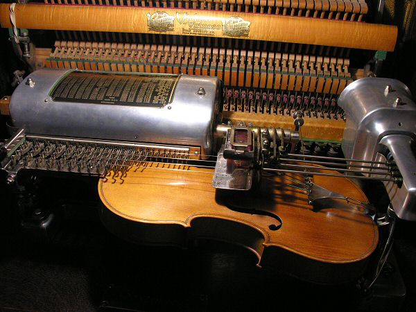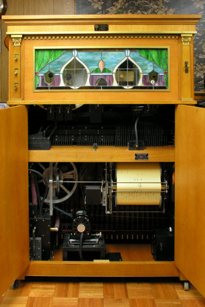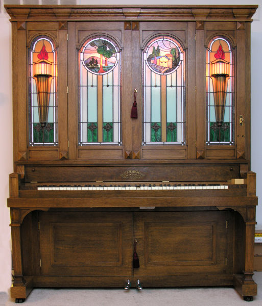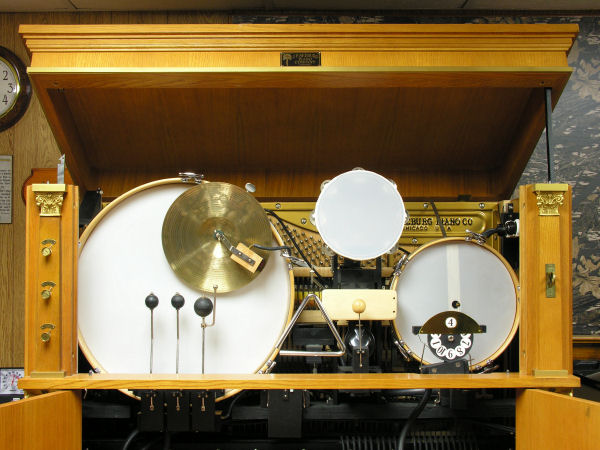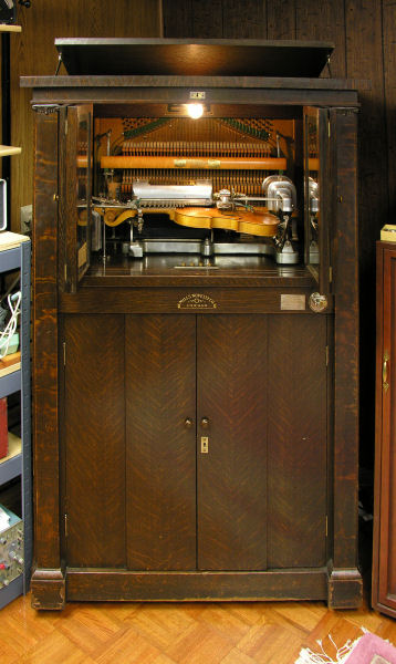 This Orchestrion features Piano, Pipe Organ, Mandolin, Bass and Snare